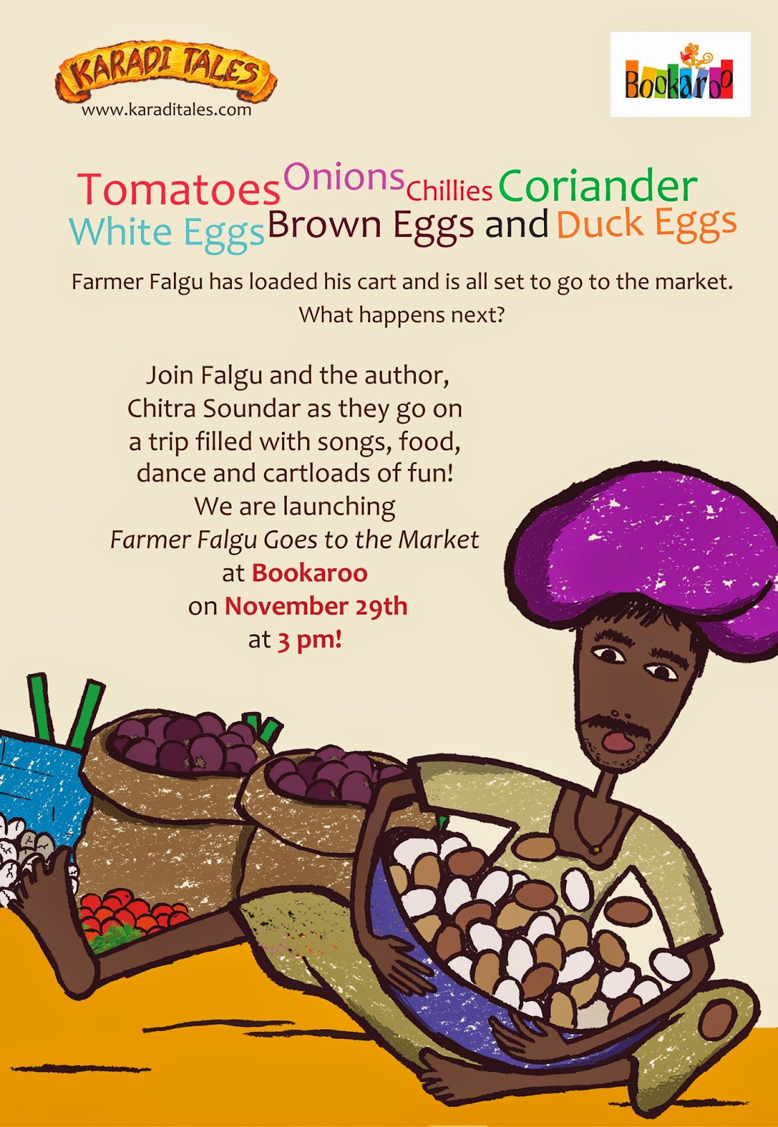 We had a fabulous time at Bookaroo yesterday. We launched Farmer Falgu Goes to the Market in front of a packed audience, sang songs, played the drums and the pungi, and even learnt to make omelettes! Here are some pictures from the event 🙂