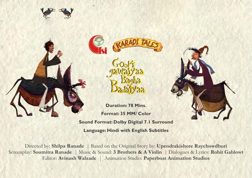 GGBB – Goopi Gawaiyaa Bagha Bajaiyaa, is an animated feature film inspired by Satyajit Ray’s classic Goopi Gyne Baagha Byne.  Directed by Shilpa Ranade, this film has been produced by CFSI in association with Karadi Tales.