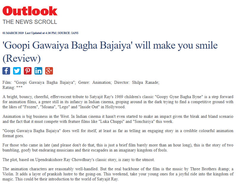 Before I say anything about the movie, can I just applaud director Shilpa Ranade first, to have thought of remaking a Satyajit Ray classic that has been loved by generations. And such a mammoth task of re-doing it for the current generation – why would one do that? The only answer to that is immense love for the source. And that love shows in Ranade’s adaptation of Goopi and Bagha’s tale, titled Goopi Gawaiya Bagha Bajaiya.