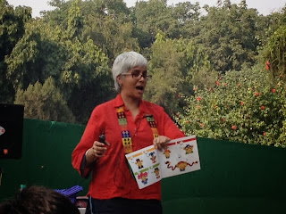 That’s our Publishing Director, Shobha Viswanath telling the story of Kutti and the Mouse at The Palms at Indira Gandhi National Centre for the Arts, New Delhi. The 6th Bookaroo Festival of Children’s Literature happened there last weekend.
