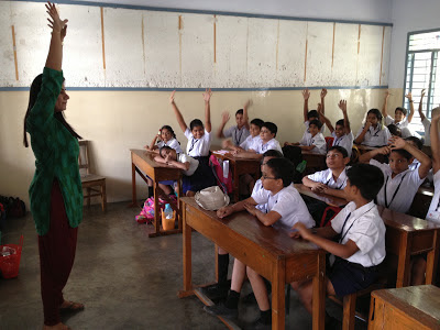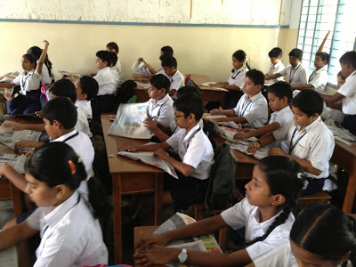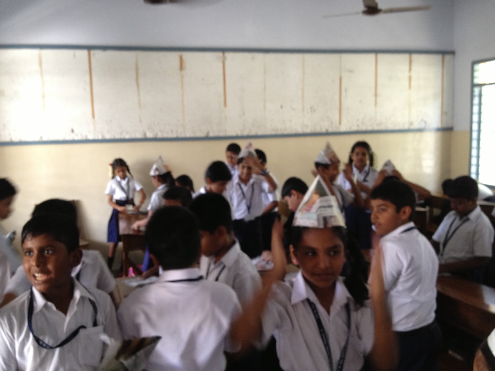 Our storytellers from the Book Lovers’ Program for Schools did a storytelling session at P. S. Senior Secondary School in Chennai on 24 June 2013. She narrated The Monkeys and the Capseller to the students of Class 5. She also did 2 activities with them: “Monkey See, Monkey Do,” where the kids had to imitate her, and a craft activity that involved making paper hats.